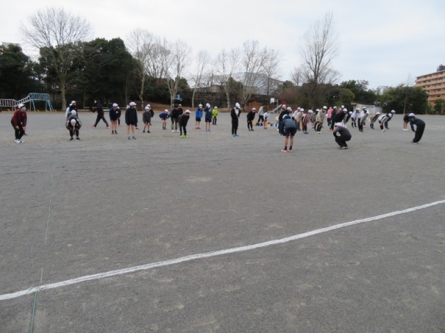 学年閉鎖のため延期になっていた6年生の持久走記録会でしたが、2月17日(火)午前中に行われました。
