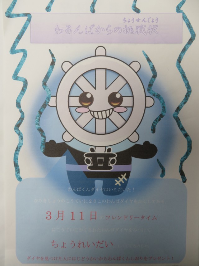 『制限時間10分のうちに、校庭に隠された20個の「わんぱダイヤ」を見つけ出し、記念品をゲットする』というものでした。