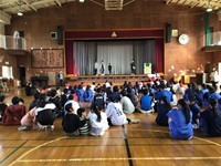 10月9日に陸上部壮行会がありました。市内陸上大会に参加する6年生を、全校で応援しました。