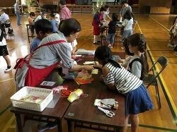 七夕について学習をしたあと、七夕飾りを地域の方と一緒に作り、飾りつけをしました。