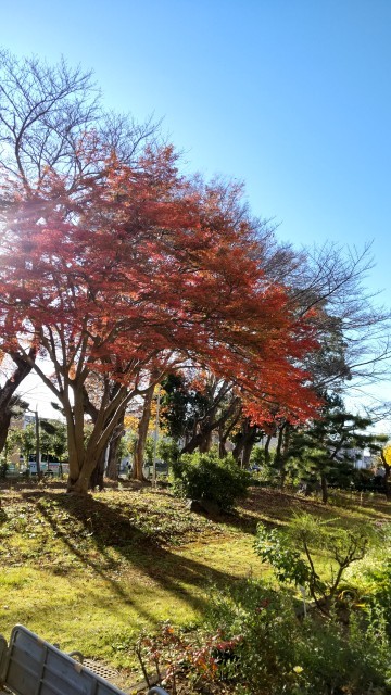 我孫子中学校の道も黄色の絨毯が広がり、木々も赤く色づいています。落ち葉の掃除に日々追われていますが、3年生が中心となってボランティア掃除をしてくれています。