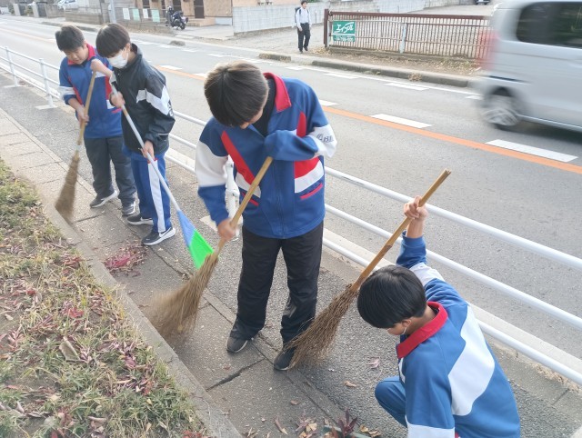 2年生の有志による活動です! 公開日 2025/12/09 更新日 2025/12/09 学校生活のようす 連日2年生の有志によって、朝から落ち葉掃きを行ってくれています。(3年生も以前にやってくれていましたが、写真を撮っておらず…3年生ありがとう!)清掃が週に3回になりましたが、このように自主的に自分たちの学校をきれいにしようとする活動が2年生を中心に起こることは、素晴らしいことです! +3