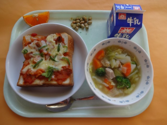 今日は、我孫子産野菜の日です。キャベツが我孫子産の野菜です。たっぷりの野菜と豚肉をやわらかく煮込んだフランスの家庭料理「ポトフ」は、いわば洋風の煮物と言えます。肉や野菜など、たくさんの食材を使うので、不足しがちな栄養をとることができます。特に体を温め寒さに対する抵抗力を高めるたんぱく質、免疫力を高めるビタミンAや、コラーゲンの合成に役立ち感染症予防に効果のあるビタミンCがとれます。気温が低く、体調を崩しやすい季節です。かぜに負けない体づくりをするためにもしっかり食べましょう!(給食メモより)
