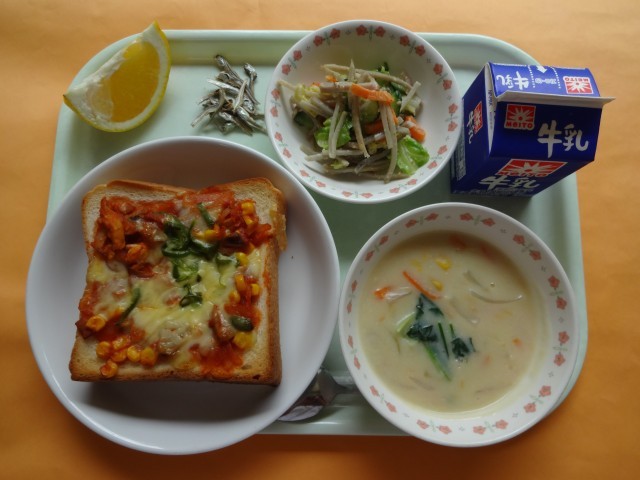 4月21日 公開日 2026/04/22 更新日 2026/04/22 給食 今日のコーンクリームスープは、豆乳コーンクリームスープです。6つの食品群に分けた時、豆乳は1群になります。加工品を分類する場合、原材料を考えると分けやすくなります。例えば、油あげは、1群の筋肉や骨、エネルギー源になるものです。油・・・と名前についているので、6群の油の仲間と勘違いしやすいですが、大豆からつくられたものなので、1群なのです。(給食メモより)