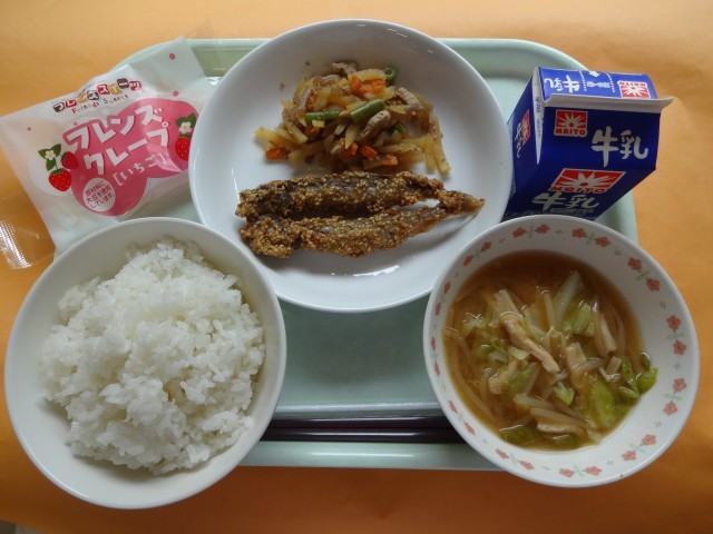 給食の時間は、おなかをいっぱいにするだけの時間ではありません。健康や成長を促す食材を組み合わせた食事をし、自分で食べなければならない量を食べきることで、心を成長させる時間でもあるのです。これからの一年間クラスが一つになれるように、給食を通して心も鍛えましょう。(給食メモより)