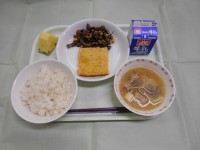 麦ご飯 擬製豆腐 ひじきの五目煮 豚汁 パイナップル 牛乳ぎせい豆腐とは、水切り...