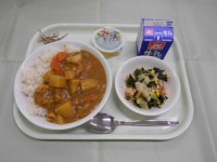 チキンカレーライス わかめサラダ いりこ フルーツミックスゼリー 牛乳