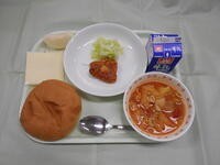 9月4日の給食 公開日 2025/09/11 更新日 2025/09/11 給食 丸パン タンドリーチキン ゆでキャベツ スライスチーズ ポテトとトマトのスープ 梨 牛乳今日のタンドリーチキンは、味付けを工夫してアレルギーの除去食なく皆が食べられるようにしました。地元のお味噌屋さんの米麹の甘酒も使い、しっとりやわらかい焼き上がりでした。