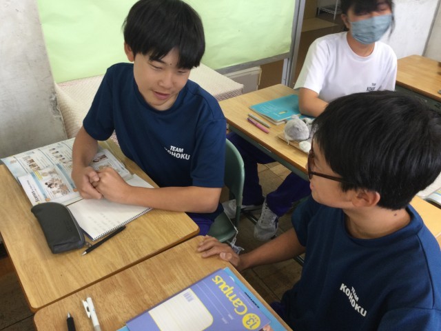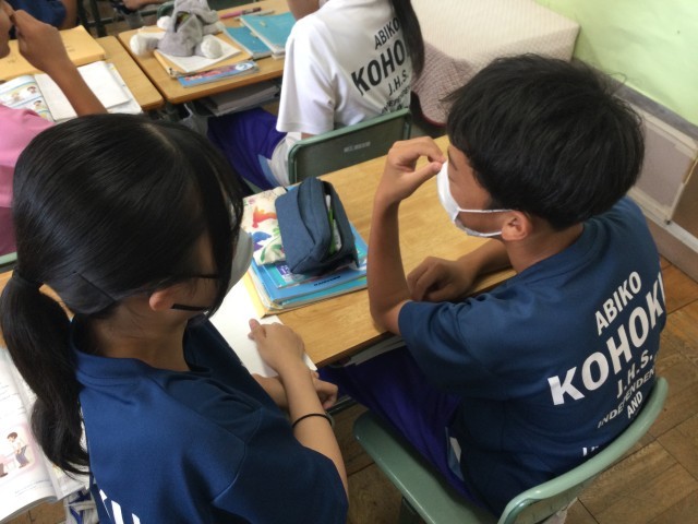 学び合い 公開日 2025/10/15 更新日 2025/10/16 学校生活のようす 2年生 英語の授業 写真のお題から、何の物語なのかを英語で伝えあっていました。 どんな単語を使えば相手に分かってもらえるのか苦戦しながらも伝えあい分かった時の嬉しさは自然と笑顔になっていました。 +1