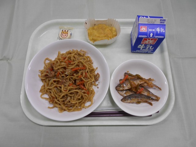 富士宮焼きそば 豆あじの南蛮漬け チーズ スイートポテト 牛乳