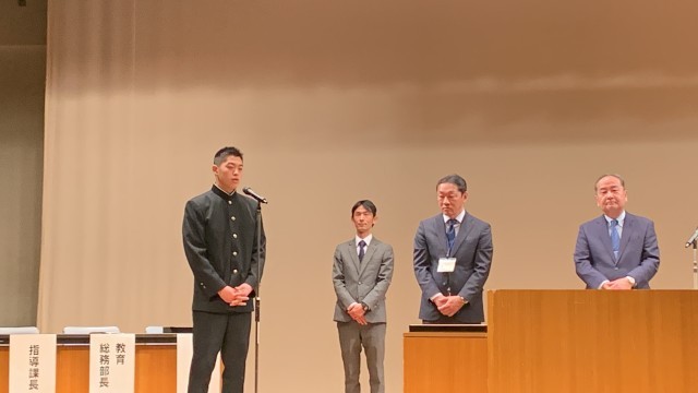 素晴らしい結果でしたので、今回表彰されました。緊張していましたが、自分の言葉で努力してきたことや支えてくれた仲間や顧問に感謝していると