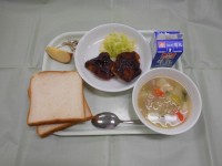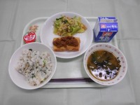 わかめご飯 カレーコロッケ 小松菜のごま和え キャベツのみそ汁 ひとくちゼリー ...