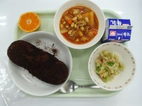牛乳、ご飯、さわらのみそマヨネーズ焼き、菊花和え、けんちん汁、プルーン