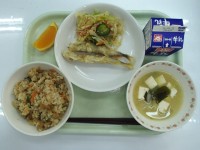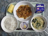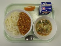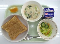 牛乳、ご飯、鰆の梅みそ焼き、ひじきのゴマネーズサラダ、ミルク豚汁風すいとん、バナナ