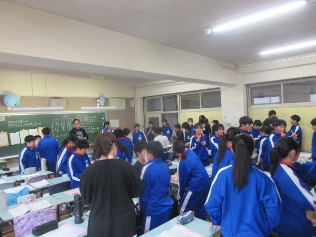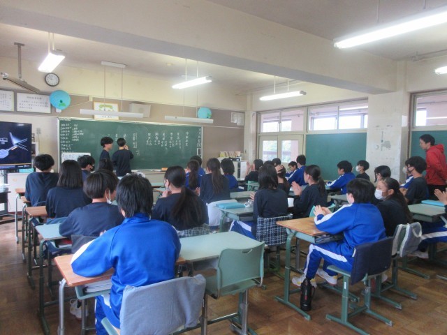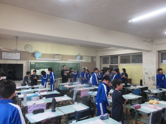 1年生は、今日から中学校生活が始まりました。今日は、しゃべらずに誕生日順に並んで一つの輪を作り、自己紹介をしていました。誰一人声を出さずに、上手に輪になっていました。2・3年生は、学級組織を決めていました。委員会や学級の係が決まっていくと、自分たちで活動ができるようになり、学校全体が生徒主体で動き始めます。
