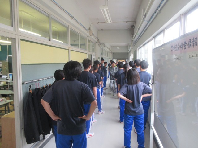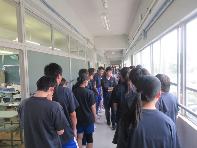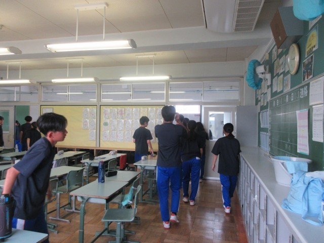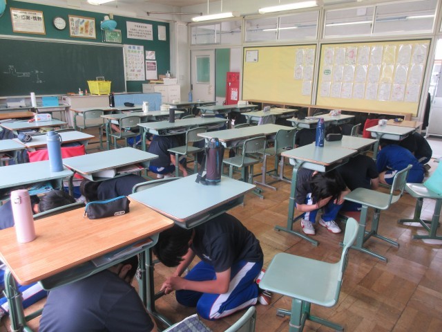 6校時に避難訓練を行いました。今回は、地震が発生したことを想定して行いました。まずは一時避難で机の下に隠れ、揺れがおさまり外への避難をするために廊下に並ぶところまでを行いました。どの学年も話をせず、静かに避難をすることができました。最後に安全担当と教頭から講評を行いました。災害はいつ起きるかわかりません。自分の命を守ることや、日ごろから備えておくことについて、話をしました。