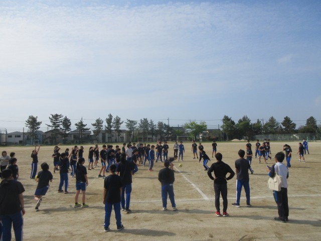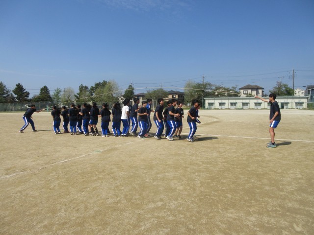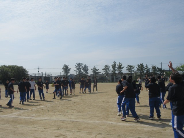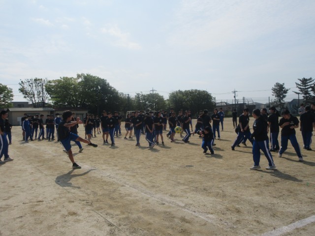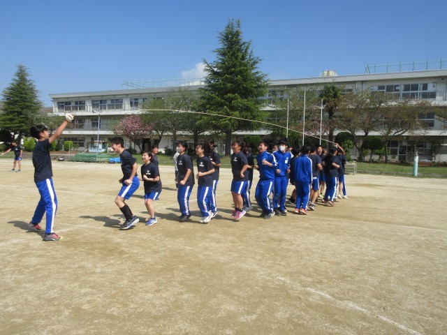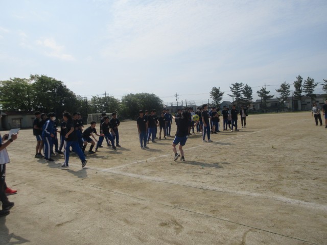 3年生が学年レクを行いました。はじめは3クラス対抗のドッジボールです。円を3等分して3クラス同時に行いました。次は男女対抗で、コートの大きさが男子は女子の半分で行いました。お互いに遠慮がなく、思いっきりボールを当てていました。最後は長縄です。8分間練習をしたのち、3分間で一番多く飛んだ回数で競いました。勝敗に関係なく、みんな笑顔がはじけて楽しそうにレクをしていました。