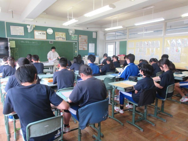 今日から正規日課が開始しました。教科担任より1年間の学習について説明がありました。教科によっては、自己紹介をしたり班で問題を解いたりしていました。1年生は教科ごとに先生が変わるので、早く慣れてほしいと思います。