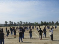 3年生が学年レクを行いました。はじめは3クラス対抗のドッジボールです。円を3等分...