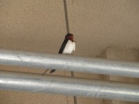 1・2年生の昇降口のところに、今年もツバメが来ました。ツバメは幸福を運んでくると...