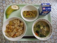 牛乳 キムタクご飯 五目卵焼き 豚汁 バナナ