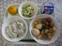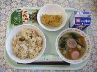 【和食の日・我孫子産野菜の日】・牛乳・吹き寄せご飯・擬製豆腐・白玉団子汁・大豆小...