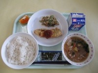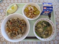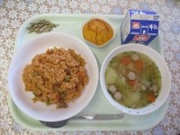 【我孫子産野菜の日】・牛乳・焼き肉チャーハン・ししゃものフリッター・豆乳担々スー...