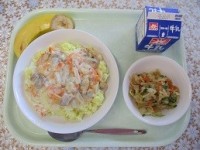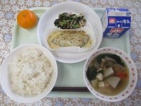 ・牛乳・ご飯・さわらのみそマヨ焼き・わかめとツナの和え物・いものこ汁・みかん