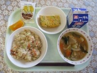 牛乳 キムタクご飯 五目卵焼き 豚汁 バナナ