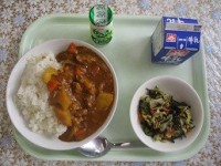 牛乳 ポークカレーライス ひじきのごまドレサラダ 乳酸菌飲料