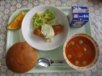 牛乳 丸パン たらのフライ タルタルソース フレンチサラダ ミネストローネ ネー...