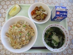 今日の給食は2年生が家庭科で作成した献立です。以下、代表班のコメントです。