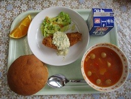 牛乳 丸パン たらのフライ タルタルソース フレンチサラダ ミネストローネ ネーブル