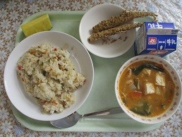 牛乳 ガーリックチャーハン ししゃものごま焼き 豆腐チゲ パイナップル