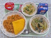 ・牛乳・ご飯・ししゃもの唐揚げ・生揚げと野菜の煮物・キャベツと油揚げのみそ汁・ネ...