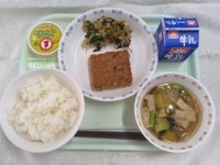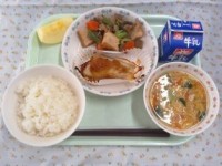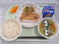 ・牛乳・ご飯・さわらのゆずみそ焼き・生揚げと野菜の煮物・むらくも汁・りんご
