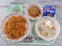 ・牛乳・お魚アーモンド・チキンライス・あさりのチャウダー・さつまいもとりんごの重...