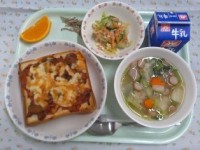 ・牛乳・煮干し・ピザトースト・ツナと大豆とチーズのサラダ・ポトフ・オレンジ