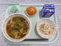 ・牛乳・お魚アーモンド・カレーうどん・シャキシャキポテトサラダ・りんごとチョコチ...