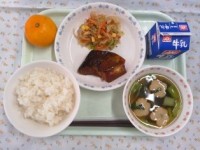 ・牛乳・ご飯・さばのみそ煮・キャベツのあえ物・小松菜のすまし汁・みかん