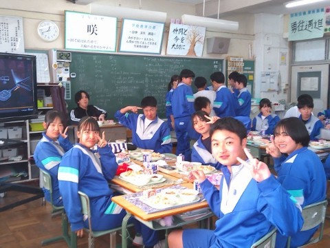 今日は、2学期の給食最終日でした。ローストチキンとクリスマスケーキが出たので、余った学級ではじゃんけんで争奪戦が行われていました。毎日おいしい給食を作ってくれた調理員さんに感謝しながら、最後の給食を楽しみました。