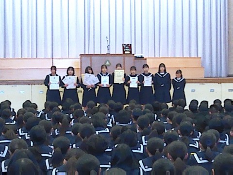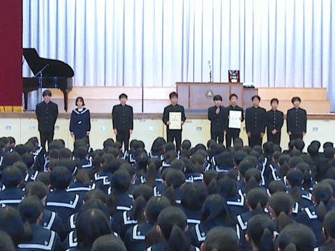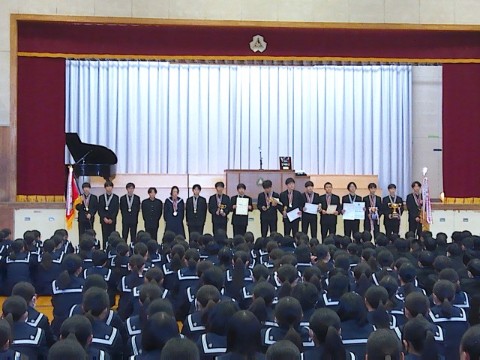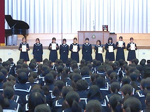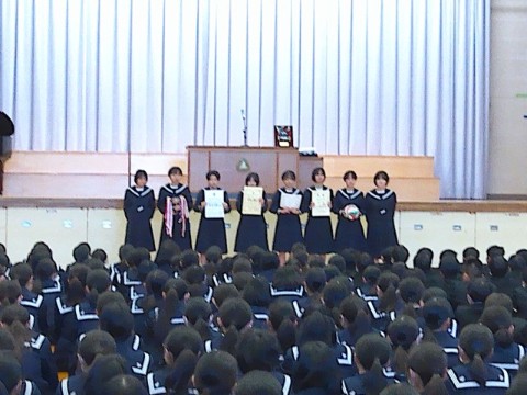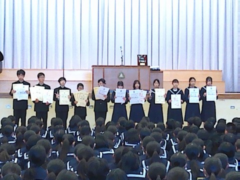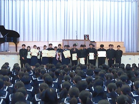 23日(火)に、2学期終業式が行われました。終業式の前には、2学期の部活動報告や表彰が行われました。2学期も各部活動や文化活動で活躍し、良い成績を残しました。今後の活躍にも期待です。