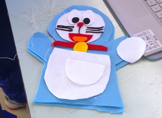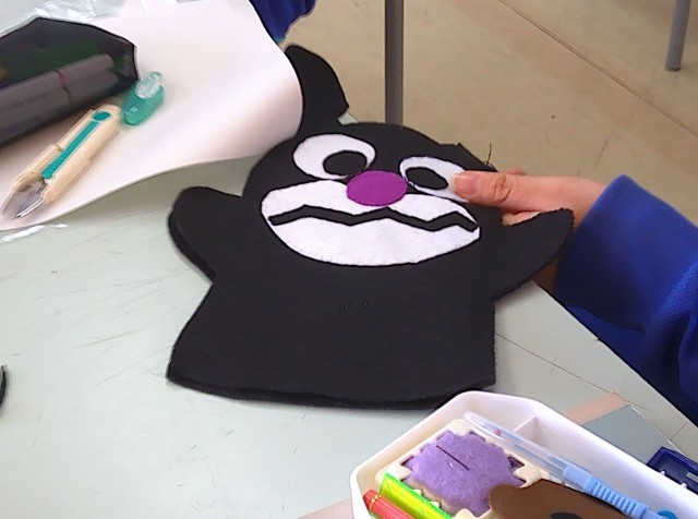 3年生の家庭科の授業で、パペットを作っています。各自でデザインをして、思い思いの作品を作っています。まだ作成途中ですが、だいぶ形が整ってきました。完成が楽しみです。