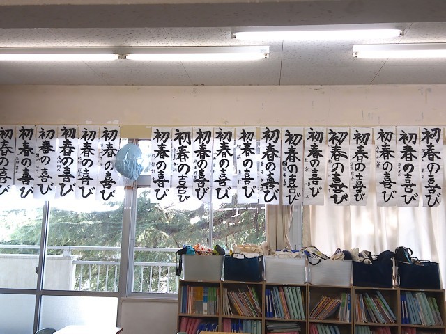 書き初め 公開日 2026/01/15 更新日 2026/01/15 学校生活のようす 3学期が始まって、生徒達も学校生活のリズムを取り戻しています。教室には書き初めが展示され、新年を迎えたことを感じます。のびのびとした字が多く、見ごたえがあります。