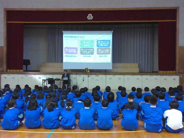 柏市少年補導センターより講師をお招きして、1年生の情報モラルに関する集会を行いました。講師の先生からは未然防止が大事だとお話をいただき、「リスクを知る」「目的をもって使う」「自己管理能力を育てる」と教えていただきました。具体的な事例を交えて話をしていただいたり、周りの人と意見交換したりして、自分事として考える機会になりました。スマートフォンやSNSを正しく使って、トラブルに巻き込まれないようにしてほしいと思います。
