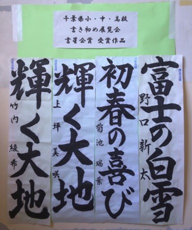 書星会賞 公開日 2026/02/13 更新日 2026/02/13 学校生活のようす 今年度の千葉県小・中・高校書初め展覧会で書星会賞を受賞した生徒の作品を掲示しています。どの作品も堂々として、とても素晴らしい字です。