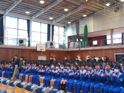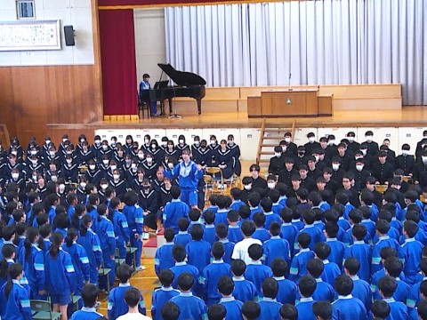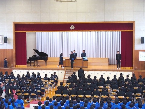 今日は、卒業式の予行を行いました。卒業生の入場から退場まで、ほぼ本番と同じ動きをしました。みんな集中していたので、修正するところはほとんどなく、スムーズに進行することができました。3年生がインフルエンザ等で、今週は欠席者が多くなりましたが、当日は出席できるといいなと思います。