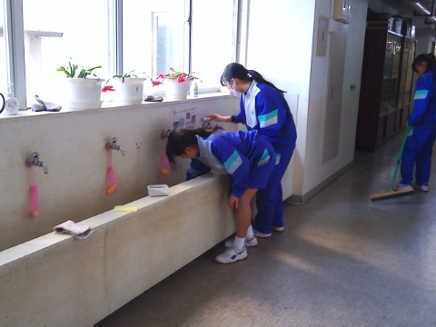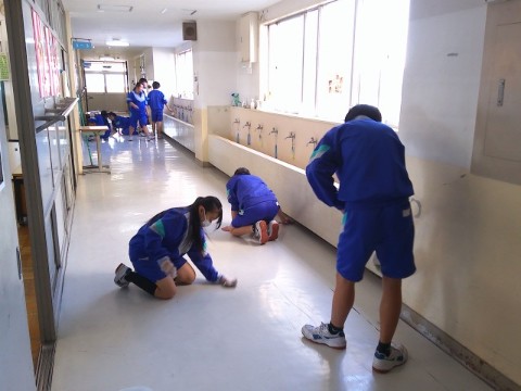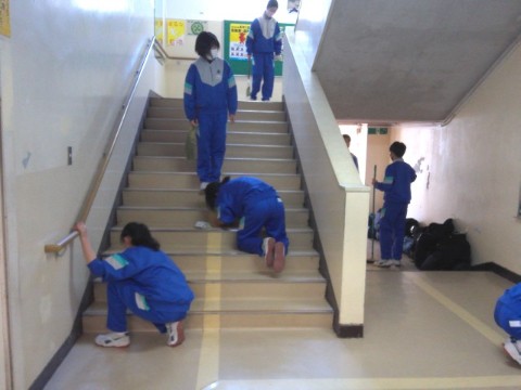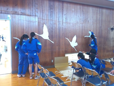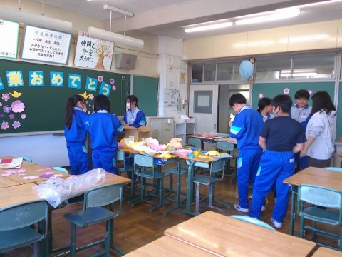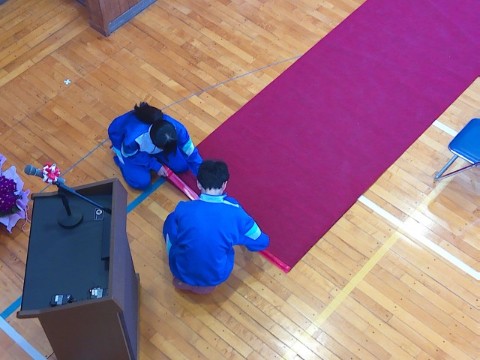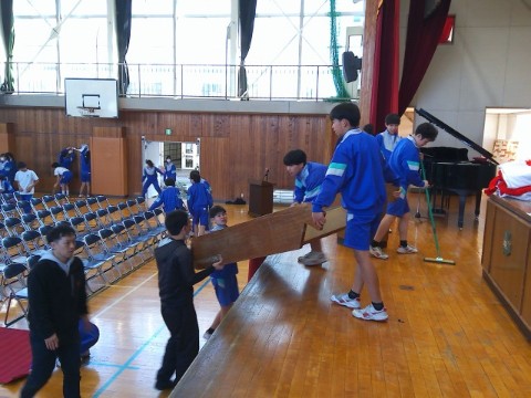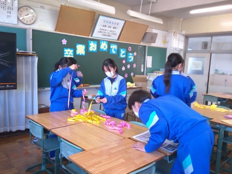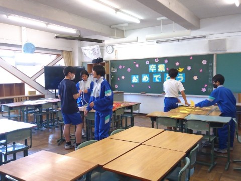 午後は、1・2年生で卒業式準備をしました。2年生が体育館の式場の設営をし、1年生が校舎内外の掃除や教室装飾を行いました。卒業生のために、一生懸命に準備をしていました。