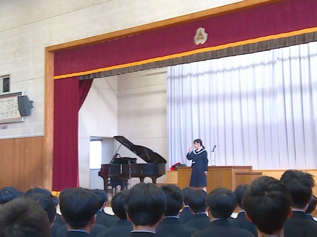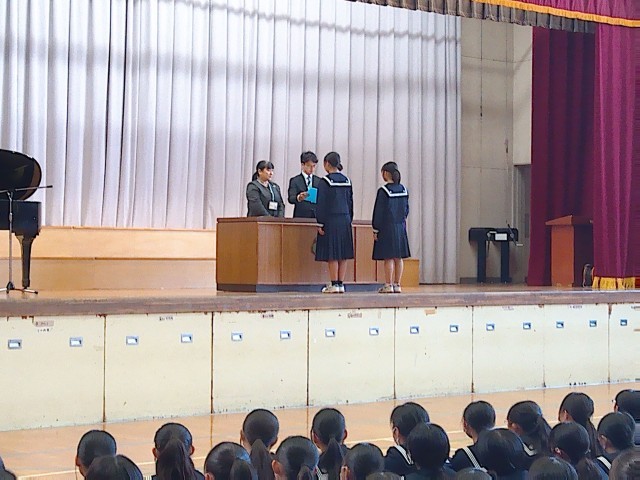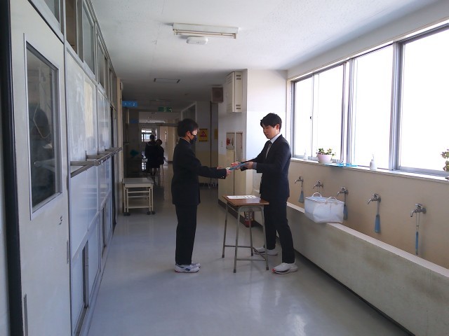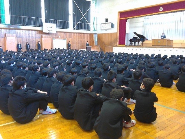 令和7年度の修了式を行い、1・2年生の代表生徒に修了証書を渡しました。校長式辞では、1年間で学んで身につけた知識や技能を、これからの人生や社会に生かすことが大切だという話をしました。また、学校教育目標である「みがき合い 支え合う 心豊かでたくましく生きる生徒をめざす」に、どれだけ近づけたか振り返り、学校教育目標を意識して生活してほしいと話しました。4月には進級して、新しい仲間を迎えます。春休みに気持ちをつくって、新学期を迎えてほしいと思います。