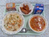 ・牛乳・お魚アーモンド・冬野菜のあんかけチャーハン・春雨サラダ・フルーツポンチ